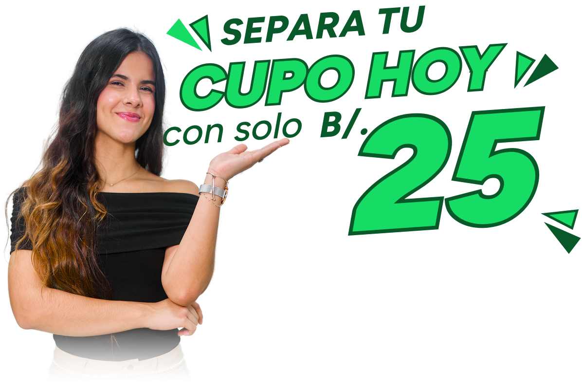 Puedes reservar tu cupo con B/. 50 y seguir cancelando la diferencia de la inscripción en cuotas hasta el 2 de mayo de 2026.