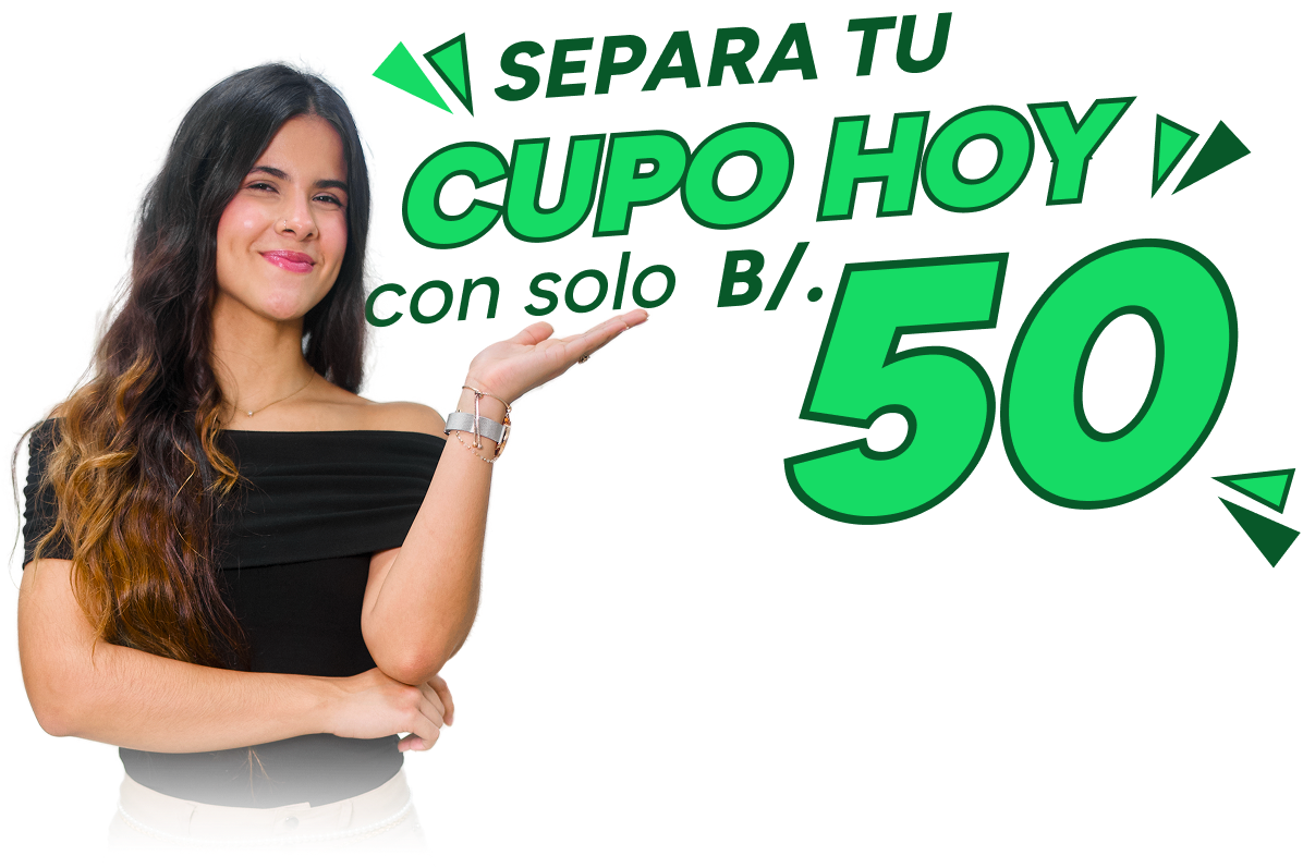 Puedes reservar tu cupo con B/. 50 y seguir cancelando la diferencia de la inscripción en cuotas hasta el 24 de abril de 2026.